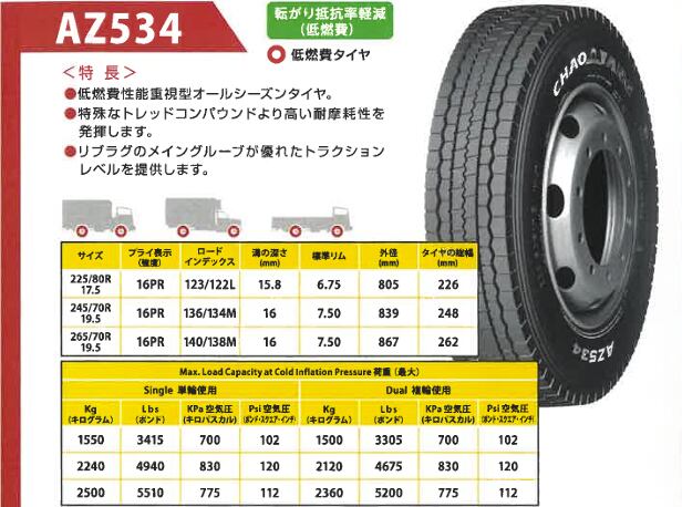 AZ534+は、優れた耐久性と安全性を兼ね備えています。厳しい舗装状況でも安定した走行性能を提供し、信頼性の高いパートナーとして活躍します。トラックの運行効率を向上させるために、ぜひこの低燃費タイヤをお選びください。